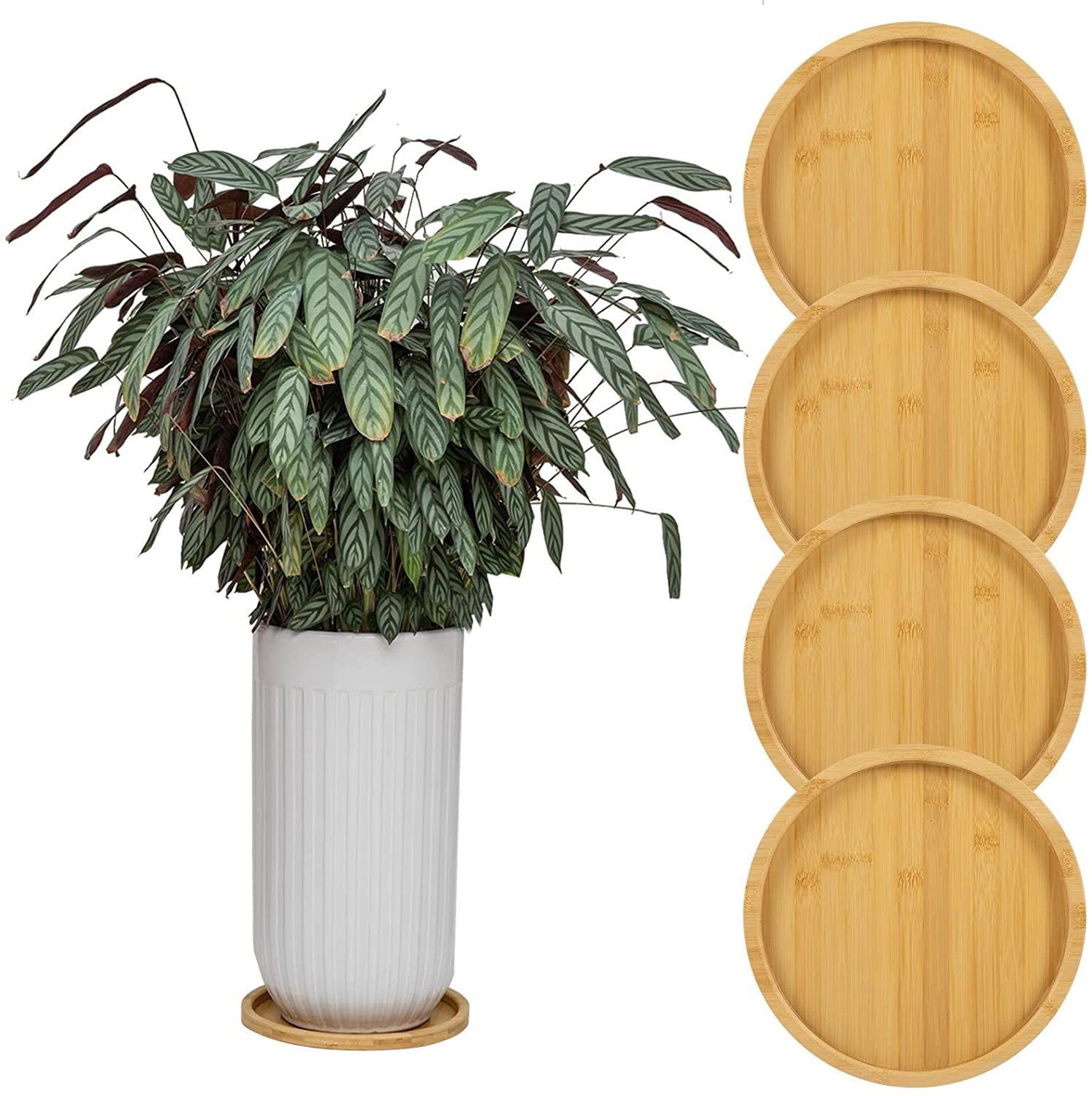 Round Bamboo Plant Saucers - Durable Bamboo Planter Trays Bamboo Drip Trays Bamboo Drainage Trays Succulent Pot Holder Trays for Indoor Outdoor Flower Plant Pots